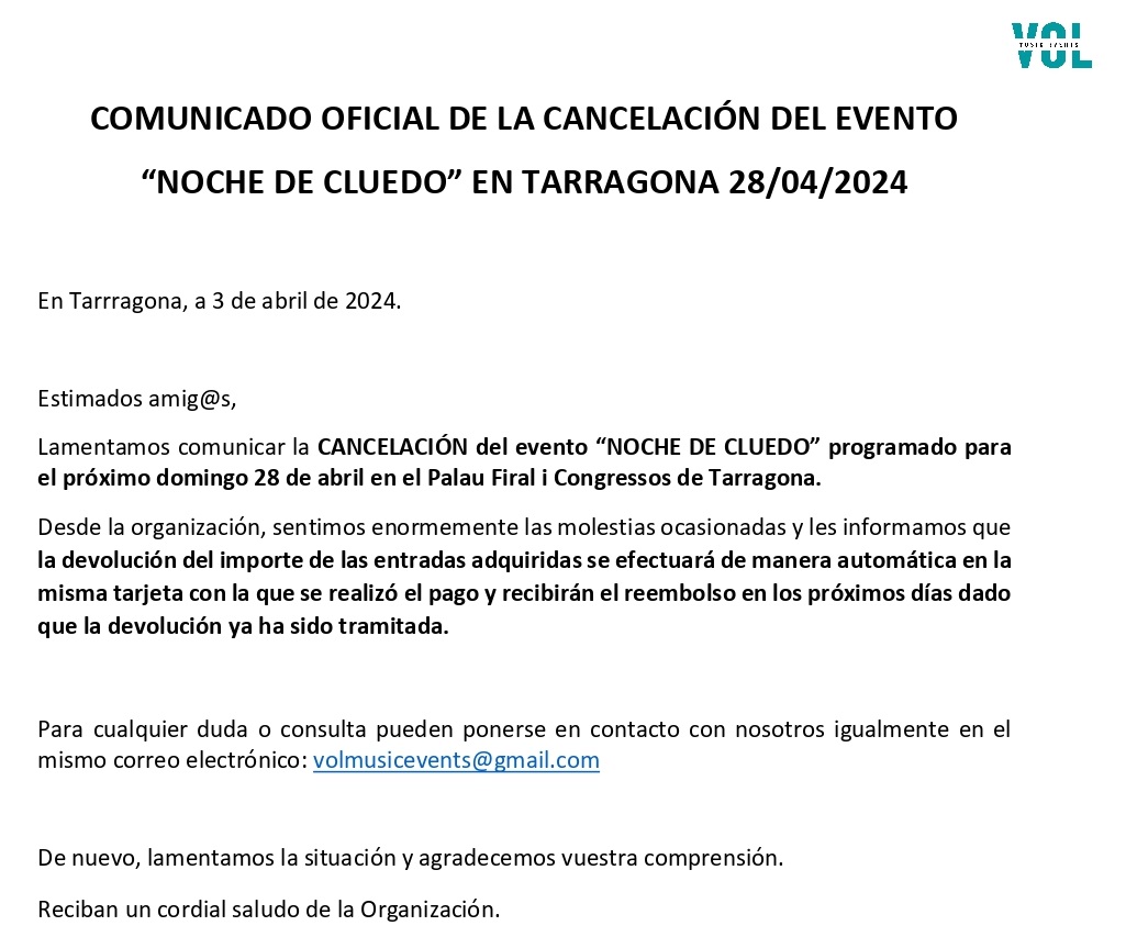 CANCELACION NOCHE DE CLUEDO TARRAGONA COMUNICADO OFICIAL page 0001 - Palau Firal i de Congressos de Tarragona