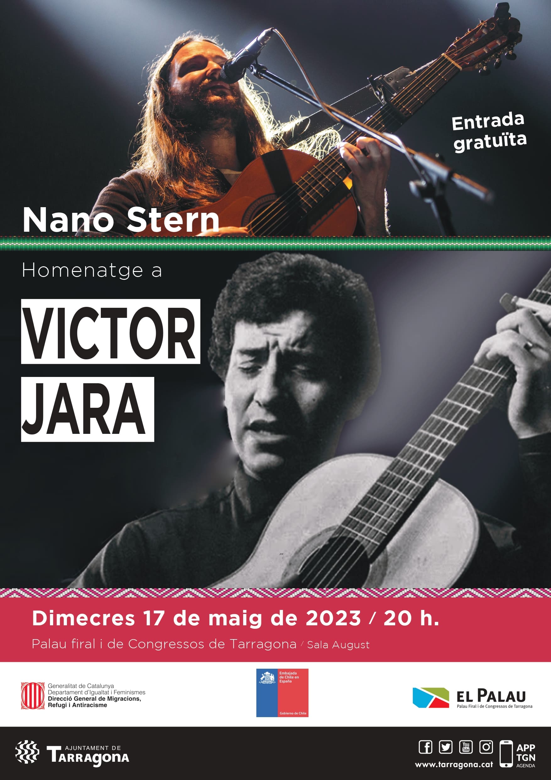 Palau Firal i de Congressos de Tarragona Carrer Arquitecte Rovira, 2, 43001 Tarragona, Tarragona, CatalunyaCommemoració de l'assassinat de Víctor Jara Tarragona ret homenatge el dimecres 17 de maig a Victor Jara en el 50è aniversari del seu assassinat amb un concert del cantautor xilè Nano Stern. L’espectacle, gratuït i d’entrada lliure, serà a la Sala August del Palau de Congressos a les 20 h. El reconegut artista xilè Nano […]