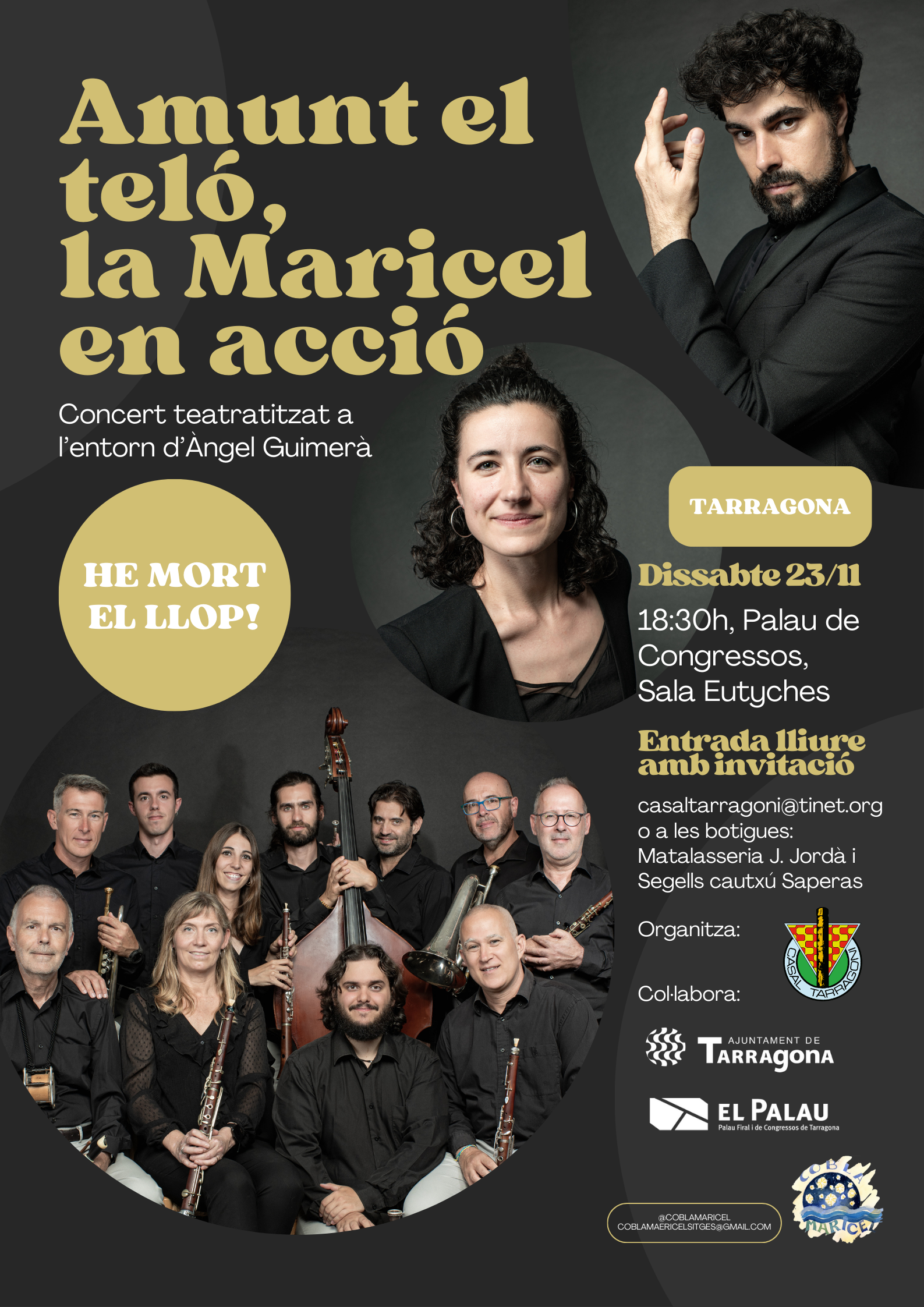 Palau Firal i de Congressos de Tarragona Carrer Arquitecte Rovira, 2, 43001 Tarragona, Tarragona, CatalunyaEl Casal Tarragoní porta al Palau Firal i de Congressos de Tarragona el concert teatralitzat Amunt el teló, la Maricel en acció. Un espectacle nou i diferent que integra l’actuació de la cobla Maricel acompanyada del tenor Andreu Miret i l’actriu Maria Armengol, sota la direcció escènica d’Alba Llorens i la direcció musical de Francesc […]
